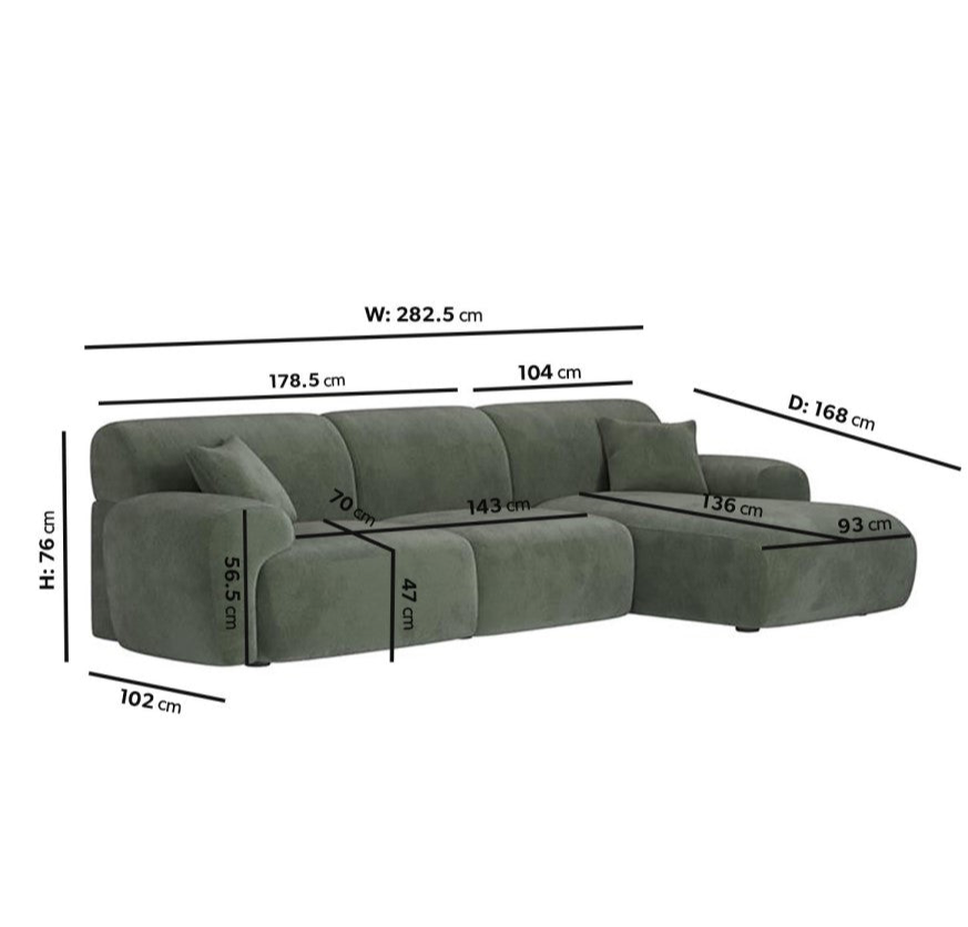 Dimensions: W 7ft, D: 40 inches (on the left), 66 inches (on the lounger side), H: 30 inches