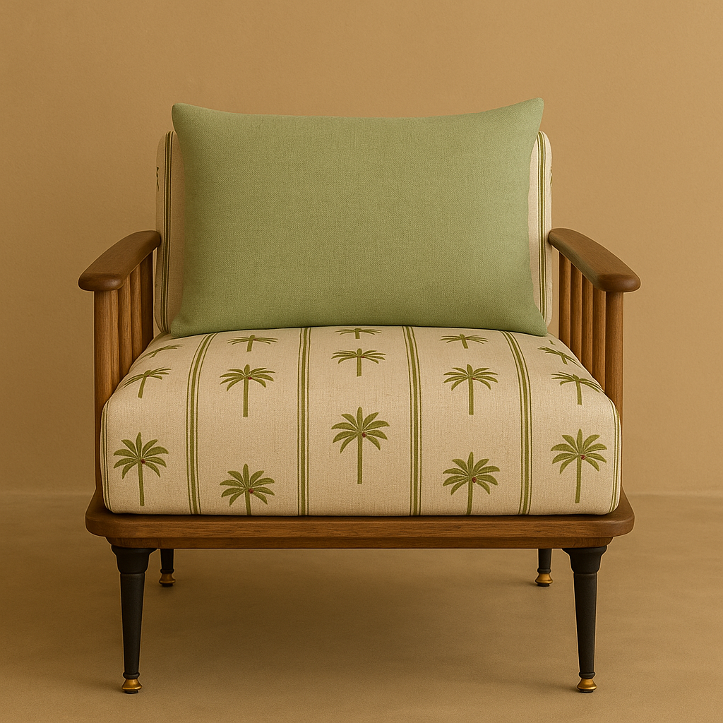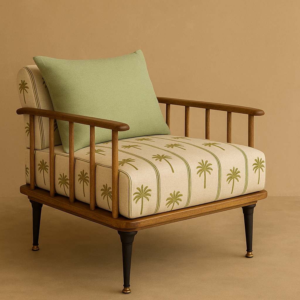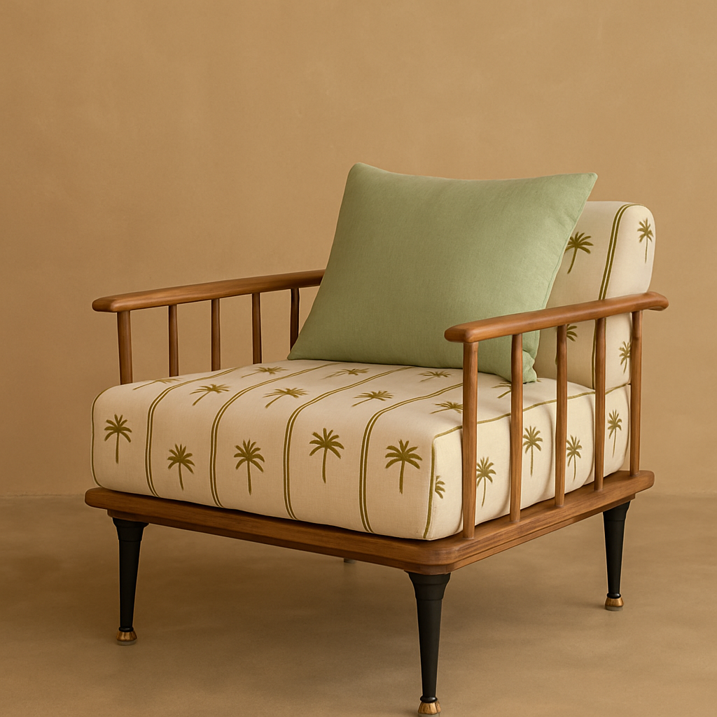 These chairs are a harmonious blend of traditional craftsmanship and contemporary design.The natural wood frame, with its clean lines and spindle detailing, adds warmth and timeless charm, while the light green accent cushion softens the look, offering a cozy yet refined seating experience. Ideal for minimalist or earthy interiors, these chairs effortlessly become the focal point of a serene living space.